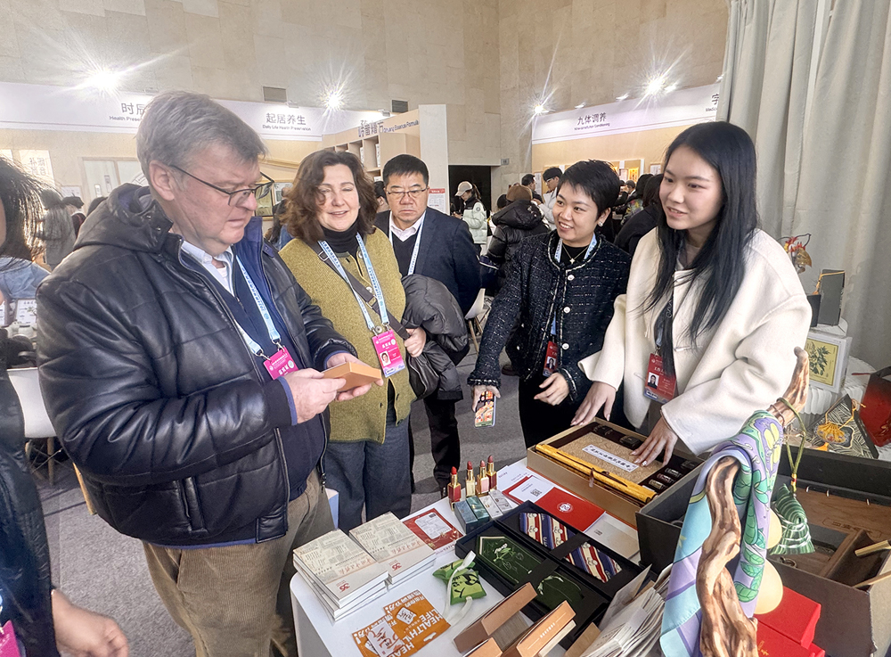 参会代表体验《中国中医药报》社文创产品。张雯馨摄